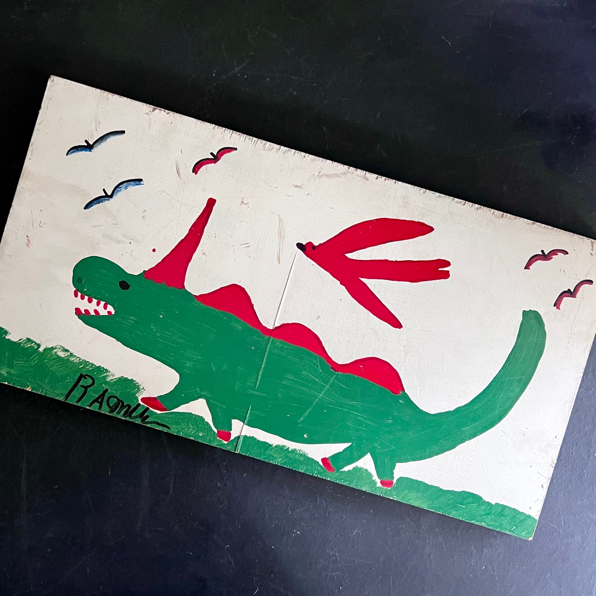R.A. Miller Folk Art Painting of Alligator on Wood