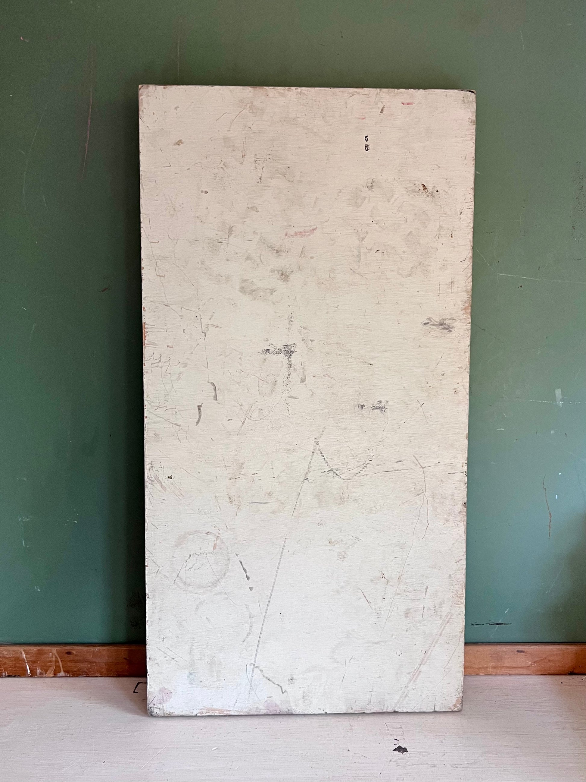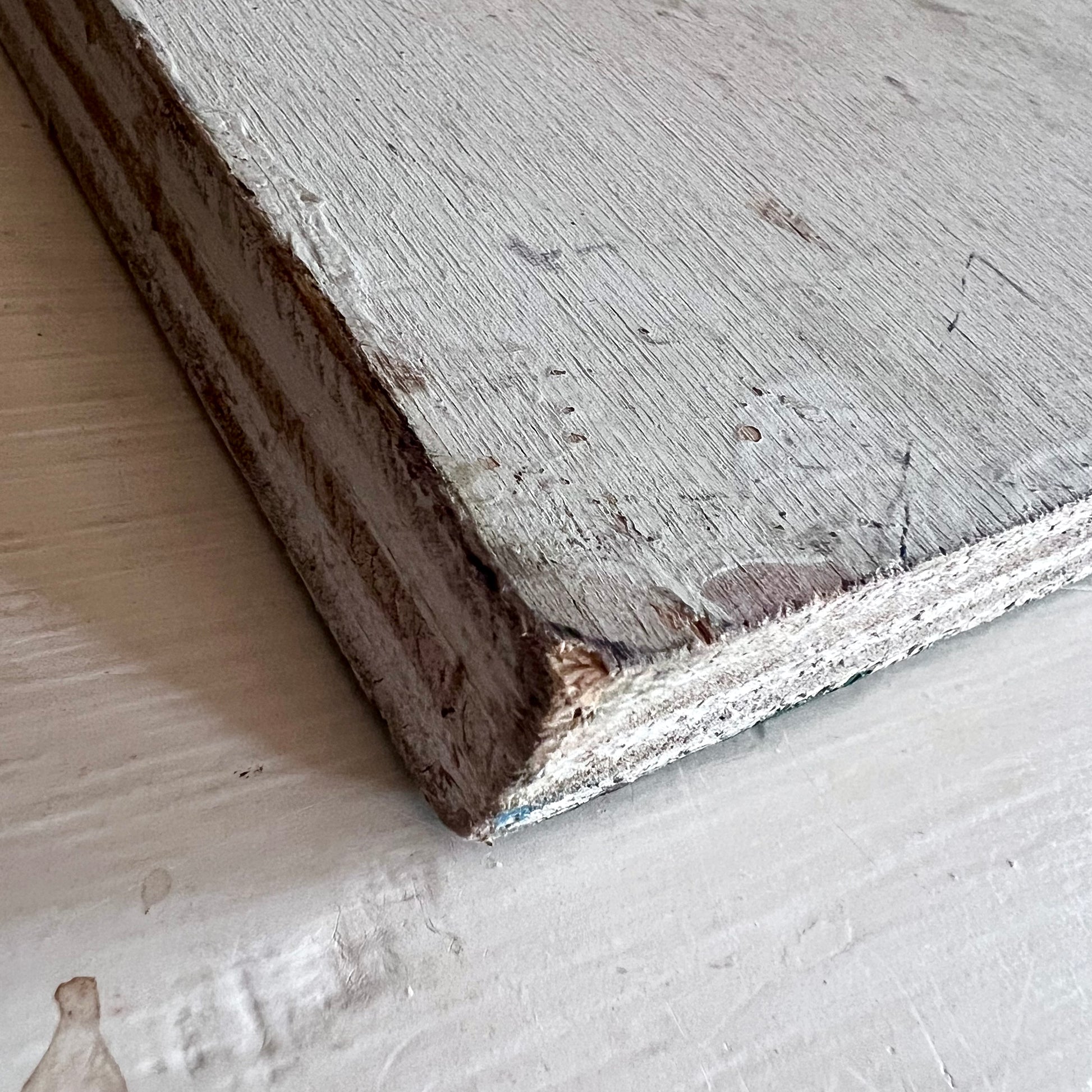 Good condition with overall wear consistent with age and use. Signed by artist lower left. Wood is heavy with minor surface soil and stains. Brilliant colors. Edge wear. Undated. No hanging hardware but would be easy to install.
