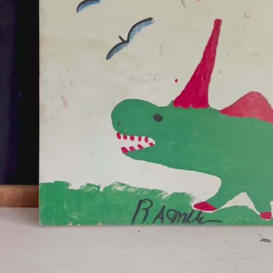 The birds in flight. The colors. The spiky gator head and back. The lush green grass. It all adds up to an authentic example from this self taught American folk artist from Georgia.